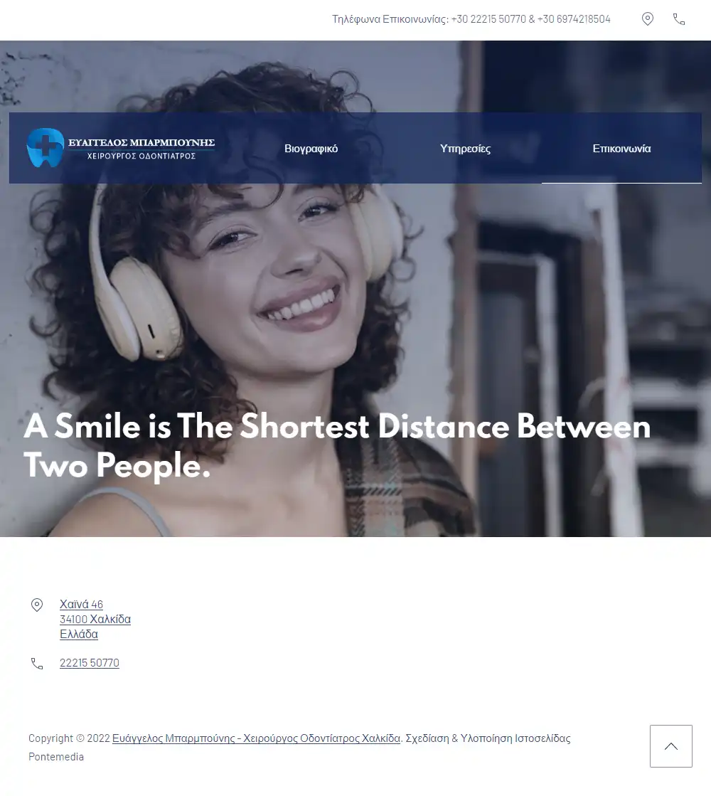 Κατασκευή ιστοσελίδας Οδοντίατρου με Βιογραφικό, παρουσίαση Υπηρεσιών και Οδοντιατρείου. Συμβατό με απαιτήσεις ΕΣΠΑ για πρόσβαση ΑμΕΑ σε επίπεδο WCAG 2.0 AA.